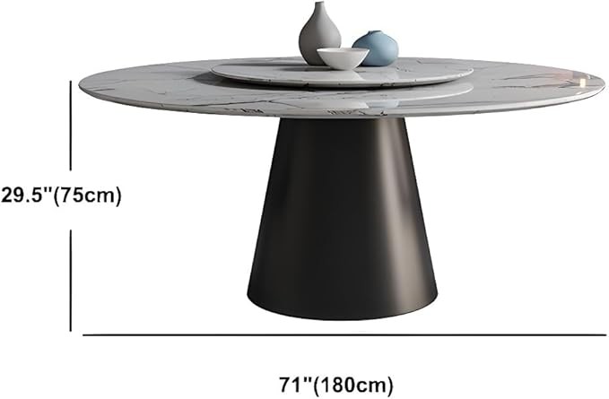 • ✦ Dimensions: Dining Table: 71"L x 71"W x 29.5"H, Dining Chair: 19"L x 18"W x 33"H. 360° rotatable dining table can better take care of every diners.