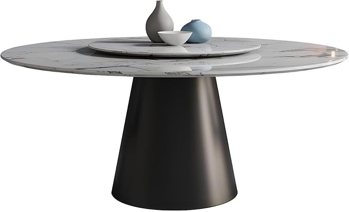 LITFAD Round Dining Table Set with Slate Table Top Modern Rotating Restaurant Table and Chairs for 10, Furniture Sintered Stone Dining Table with Lazy Susan for Home - 11 Piece Set Table & 10 Chairs
