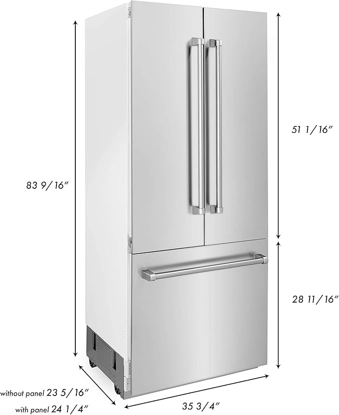 ZLINE 36 Inches 19.6 Cu. Foot Panel Ready French Door Built-In Bottom Freezer Refrigerator with Water Dispenser and Ice Maker (RBIV-36); Handles and Panels Not Included