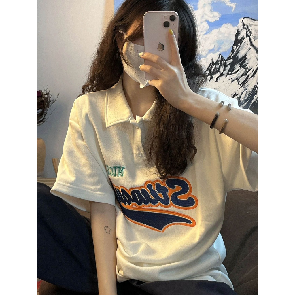【羊城故事】純棉 刺繡 t恤 短袖 原宿風上衣 短袖上衣 字母 oversize 打底衫 ins 風衣服 女生衣服 上衣
