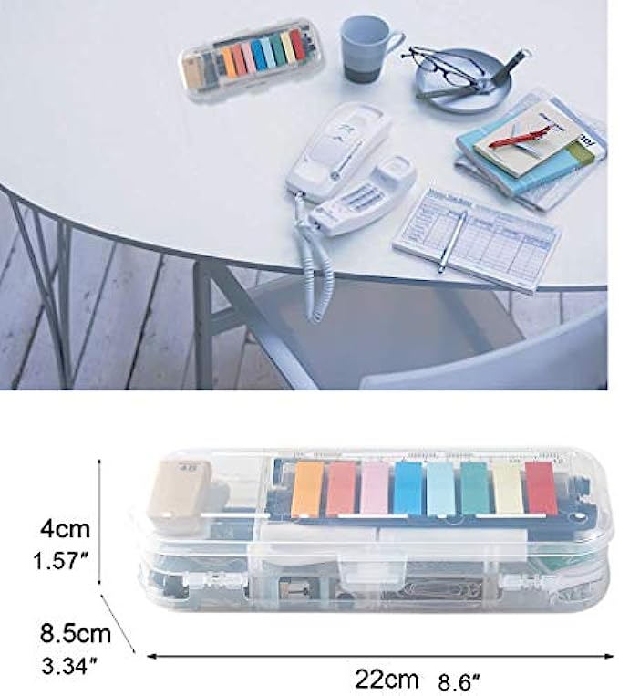 • 【EASY TO CARRY】- Our office supplies are packed in a reusable transparent plastic organizer case with 6 separated compartments, easy to carry and store when traveling or Outing. This small office supplies supply you with a matching set of everything you need for your work space.