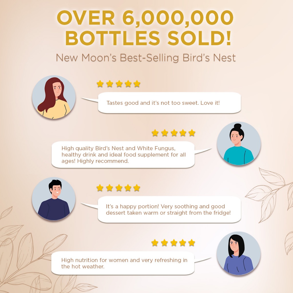 Suitability:Suitable for young to old Performance:great as a daily/weekly supplement Bought during the sale and the discount is very attractive. Comes with free gift too. Have tried other brands of bird's nest, but still prefer the new moon's taste. Delivery is very fast too. Arrived within 2 days.