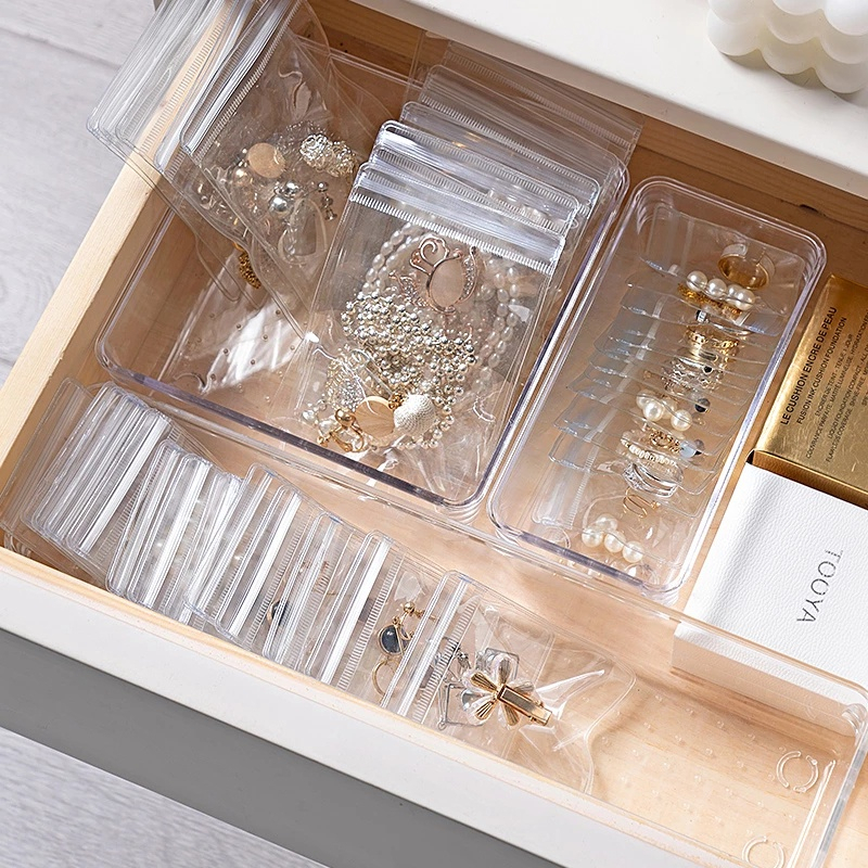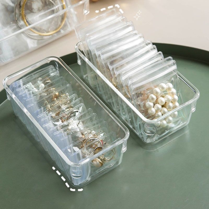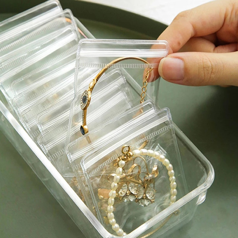 Suitability:good Performance:good Quality:good solid plastic Happy to receive this plastic ziplog . Quite hard texture so it’s good to place your Jewelry inside . At least it’s not made of thin n flimsy plastic .. love it ! Can start putting my earrings in ! To save space n put in a recycled shoebox . Need not spend money to buy a Jewelry box might cost $20-30 !