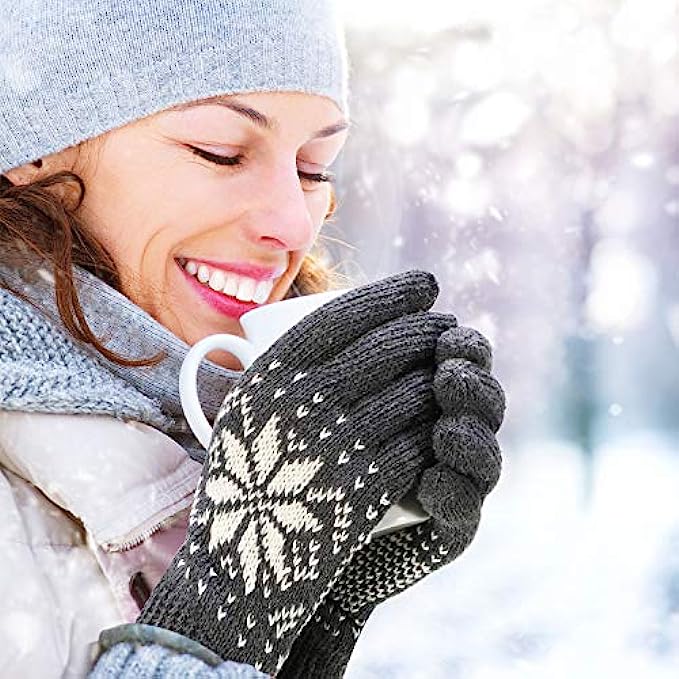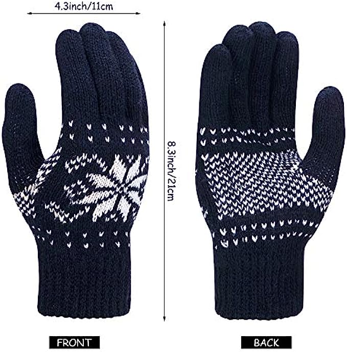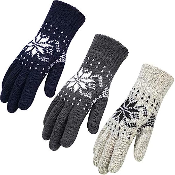 • What you will get: the package includes 3 pairs knit gloves, they are designed with snowflake pattern, comes with khaki, dark grey, dark blue color