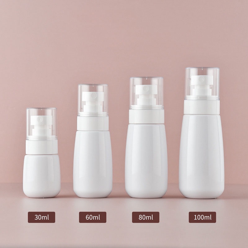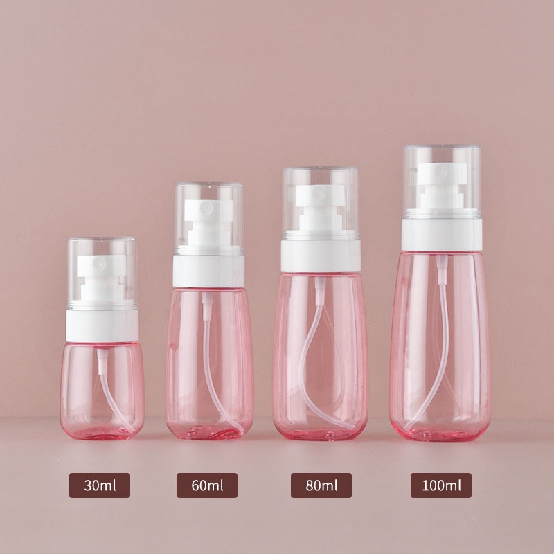 Bought all the different sizes of spray bottles to see the difference. Pic shown is 100ml used to contain hydrosol as toner. Bottle is a bit rounded and curvy, minimalist design super pretty. Spray came out as mist very comfy to spray on face. Happy with purchase.