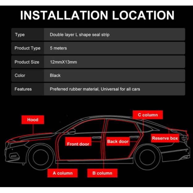 5M L-Shape Auto Car Door Trunk Seal Strip Rubber Weather Strip Edge Universal Car Silence Scheme Rubber Seal Strip Shape Soundproof Bumper strip car interior door accessories