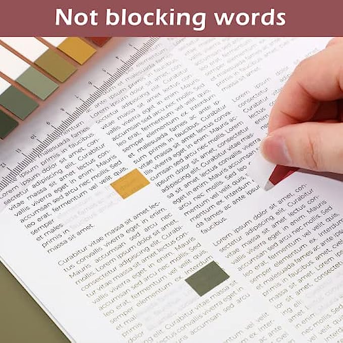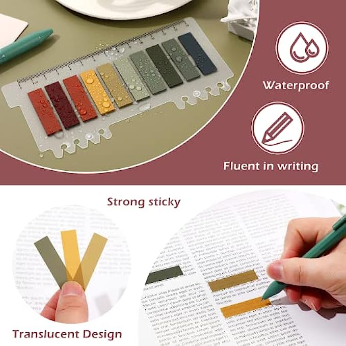 [Premium Quality Material]: The sticky notes tabs is made of reliable quality PET material and special adhesive, which is waterproof, odorless and fluent in writing. Aslo the translucent adhesive part won't cover up any information .