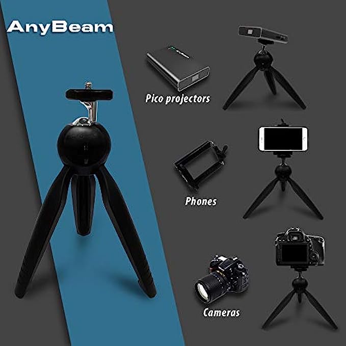 AnyBeam Mini Tabletop Tripod with Detachable Phone Holder, Compact and Lightweight, Travel Ready, Compatible with AnyBeam pico Projector, DSLRs, Compact Cameras, Phones, Webcams, Selfie Sticks