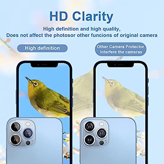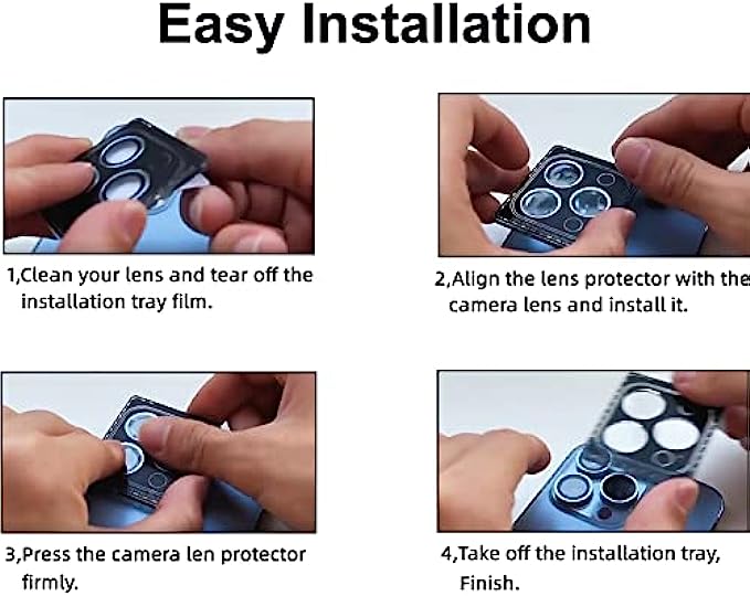 • [10S Installation] You don't need to install them one by one.Our camera lens cover for iphone 13 pro is very esay to install,Just remove the camera lens glass film,align with the hole, place and press them on the camera screen.No fingerprint,No bubbles and leaves no residue when removed.