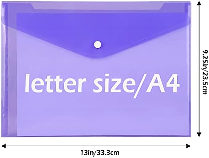 • PACKAGE INCLUDES: 28pcs 8-color A4 size transparent poly folders with snap button closure.