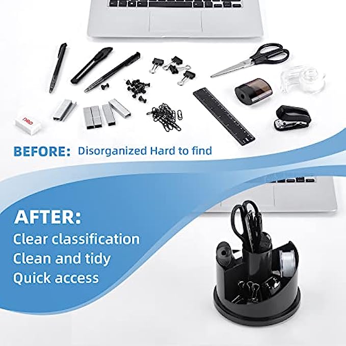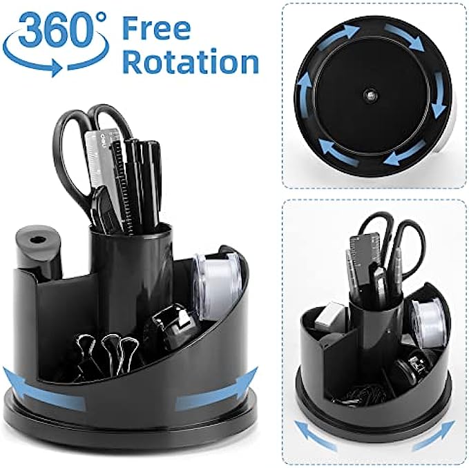 【360 FREE ROTATION DESIGN】The rotating multi-functional pen holder with 360 free rotation design, allow you easy to get all your supplies.