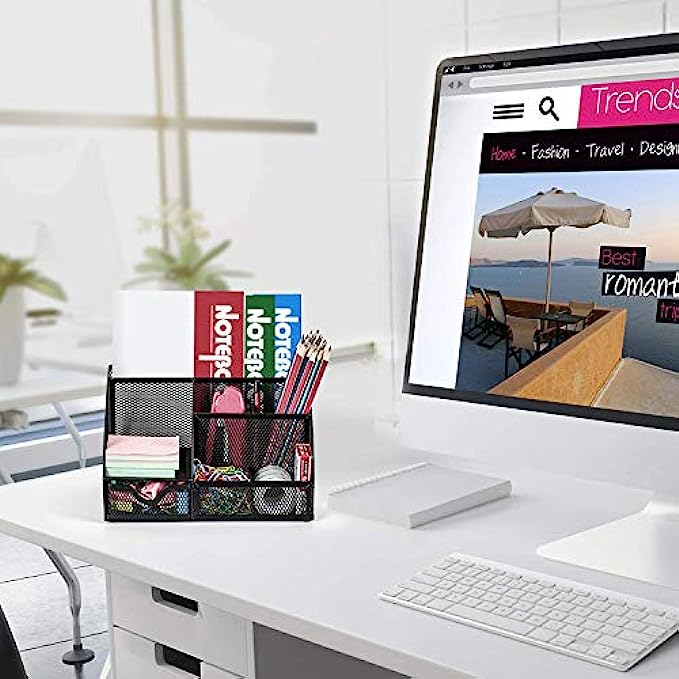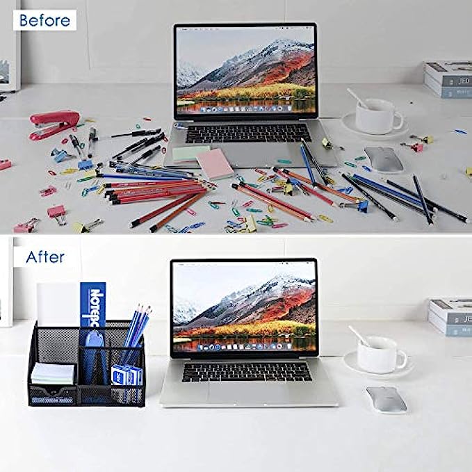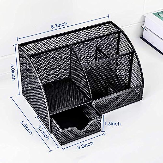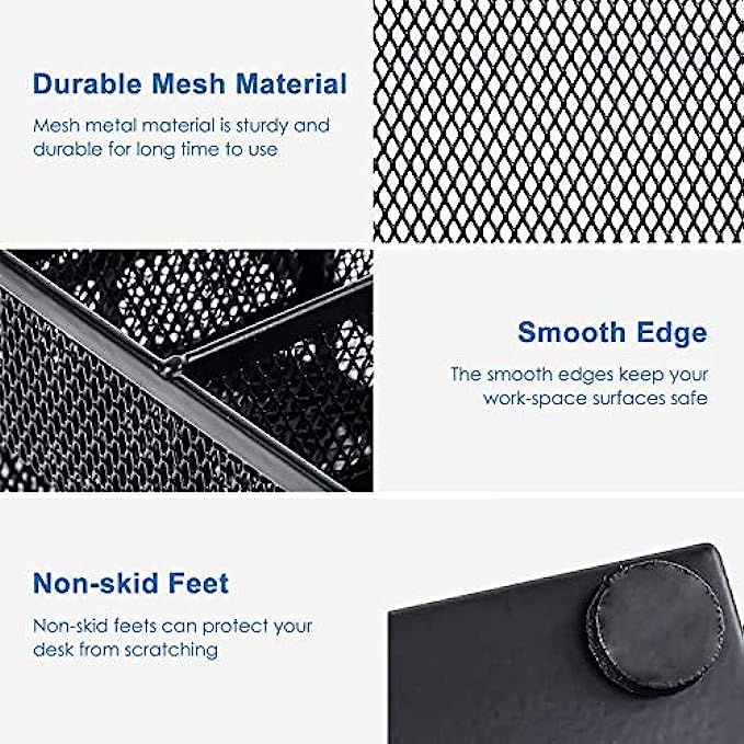 ✏DESK ORGANIZER FOR ANYWHERE: Mesh desktop organizer is suitable for home, office, work, school, classroom, workshop, studio etc; Nice on desktop, school desk, bedroom dresser, coffee table, shelf, in a college dorm room, living room; This great organizer fit for wherever you need.