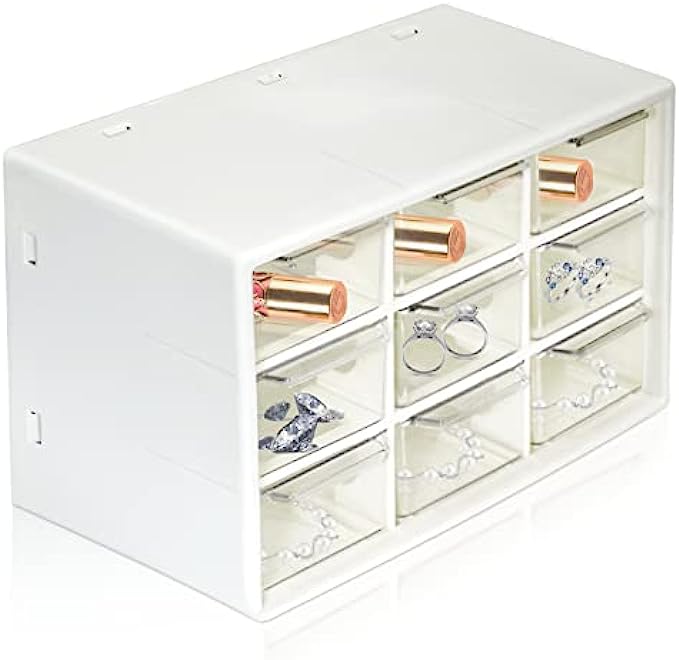 【CLEAR DISPLAY BOX DESIGN】The drawers of the storage box are made of crystal-clear plastic material, beautiful and durable. It can store and display the daily-use things perfectly. You can find what you need with the clear desk storage bins quickly.