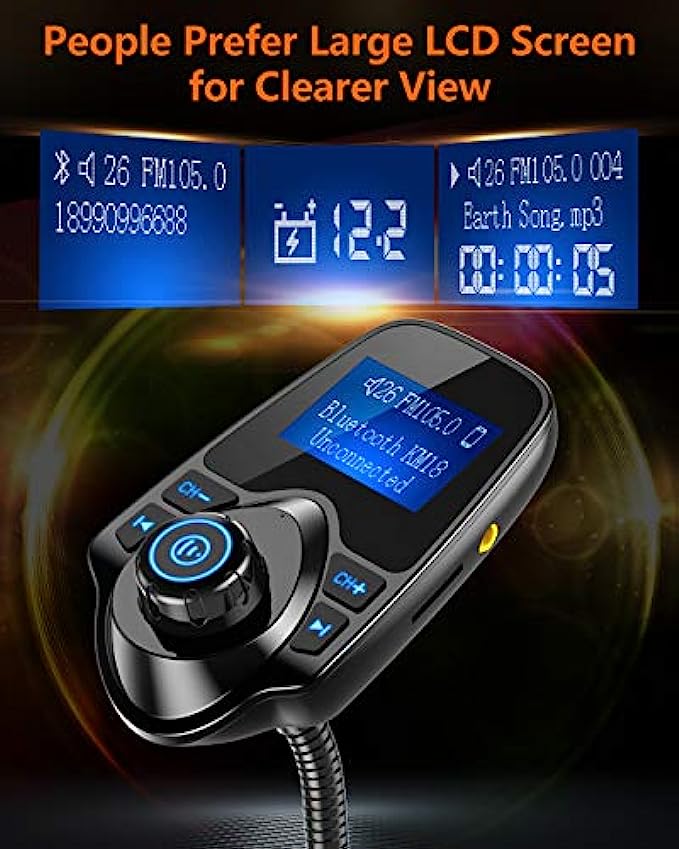 • Flexible Gooseneck&Bluetooth V5.0: The rotatable Gooseneck of the wireless radio adapter can provide you with an adjustable viewing angle and optimal viewing comfort of LCD display screen. With the Bluetooth V5.0 technology, the car bluetooth adapter can provide a more stable and faster connecting without intermittent disconnection.