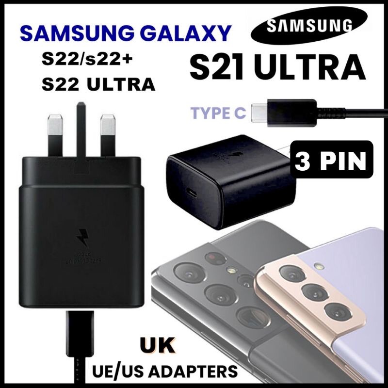 Samsung Fast Charger 45W UK Plug Super Fast PD Type C To Type C Cable For Galaxy S21 ultra S20 A72 A71 A91 Note10 Note20 Z Flip 3 Tab 7 Plus USB-C adapter