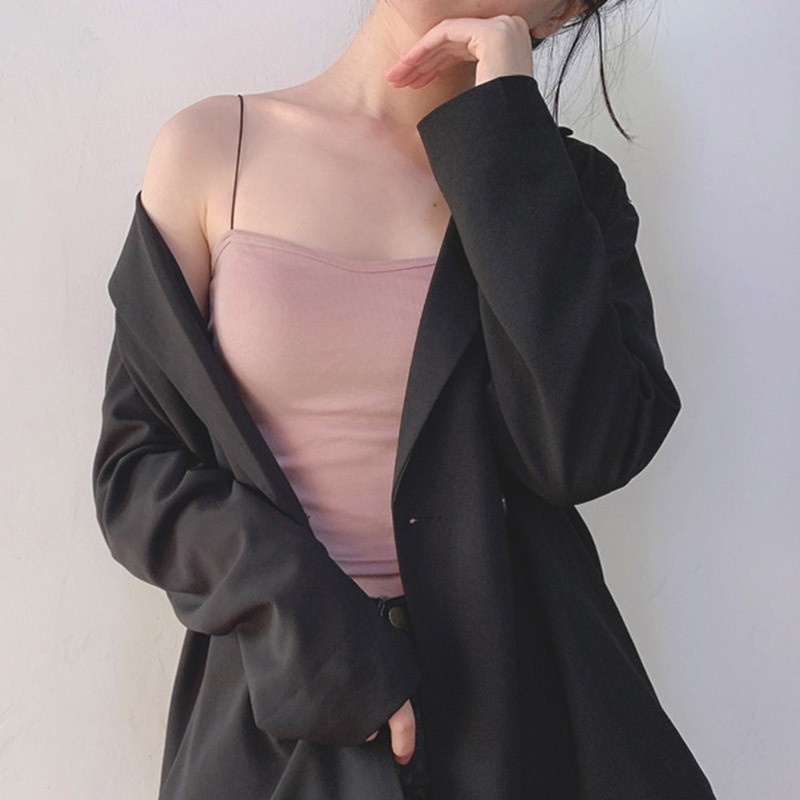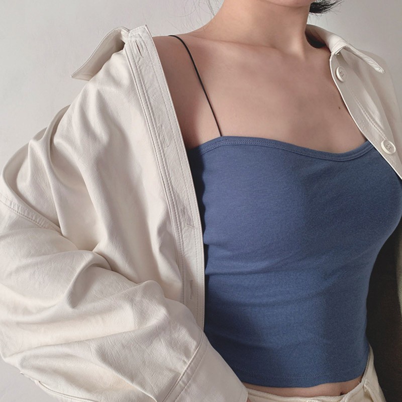 Sexy Women Thin Strap Sling Tank Top Solid Color Breathable Chest Pad Underwear Beauty Back Comfortable Tube Top