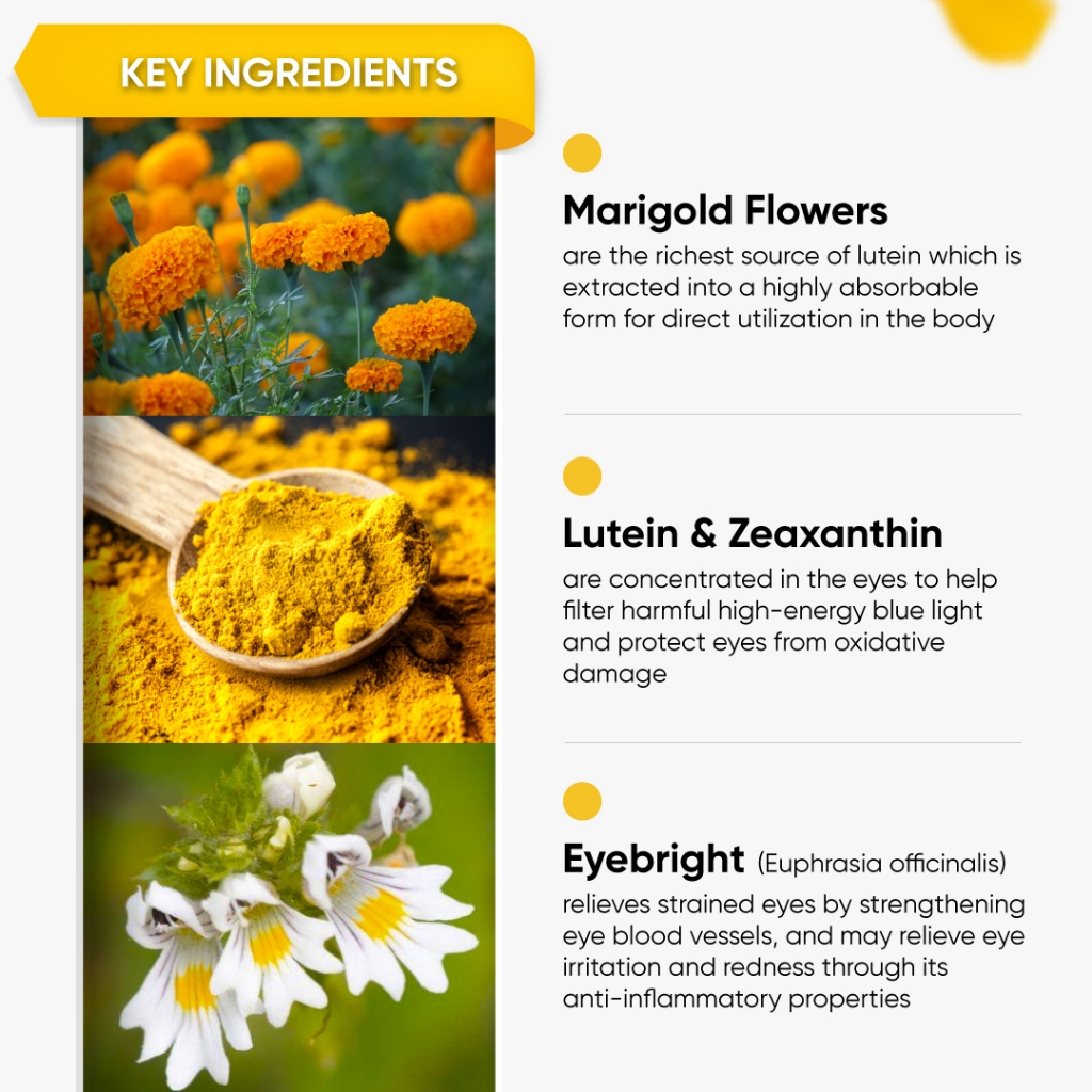 Repeat buyer. As per its bottle benefits - help filter harmful blur light so I have been taking it for months. Thanks seller for the free gift apple code vinegar gummy. All products are of good expiry dates 2025.
