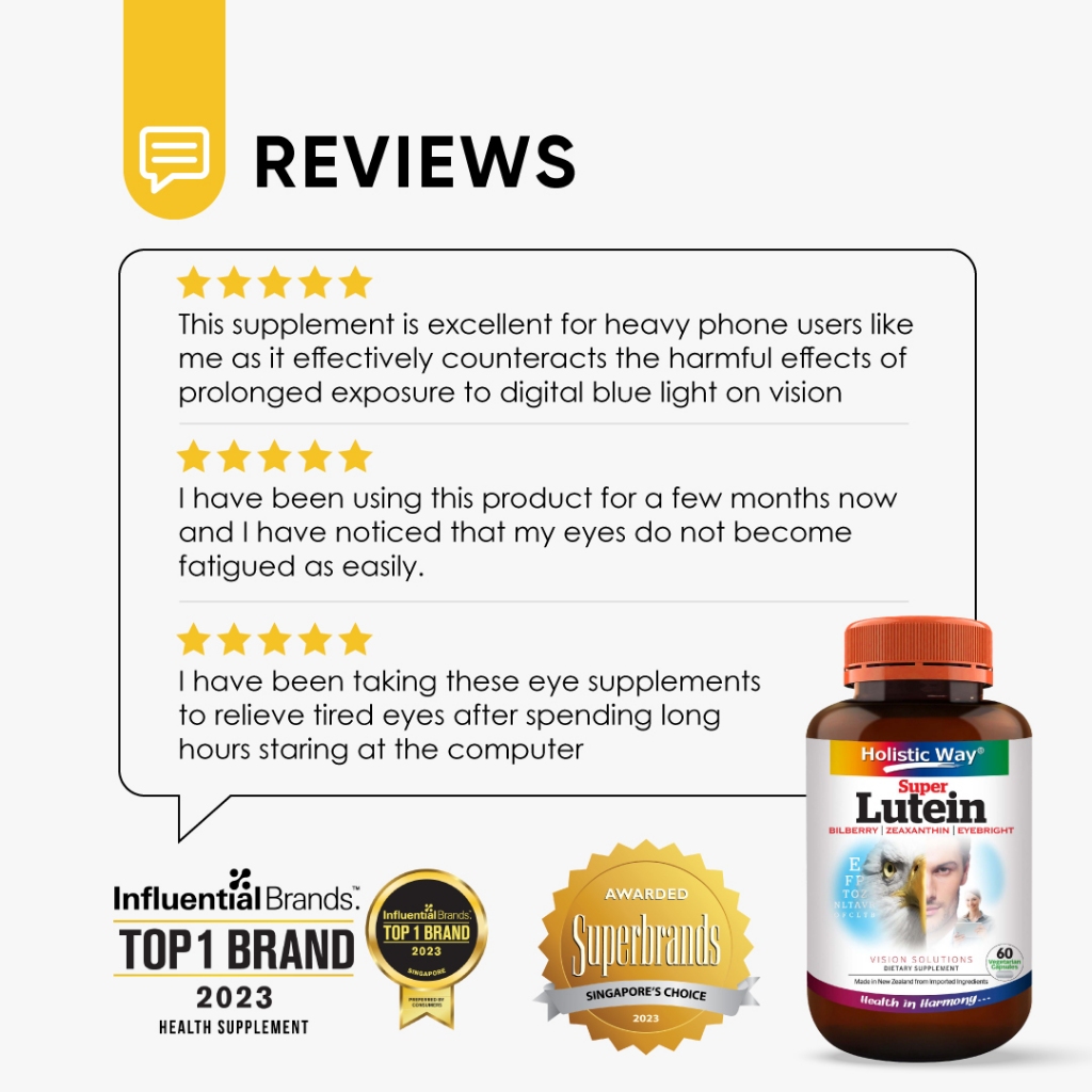 Performance:Excellent Suitability:Effective [Bundle of 2] Holistic Way Super Lutein (60 Vegetarian Capsules x 2) Fast delivery and in bubble-wrap packaging Thank you for freebies and 2023 table calendar This is my half yearly repeated purchase for my family eyecare supplements ? Highly Recommended ?