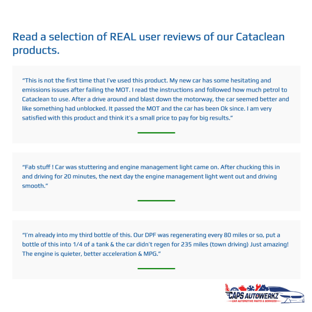 Performance:Instant feels my throttle lighter Suitability:Petrol car Quality:Great I've got the p0420 code Hopefully it works to clean my catalytic haha.. Left 1/4 of petrol and add cataclean into petrol tank, drive until the light on and refill my tank