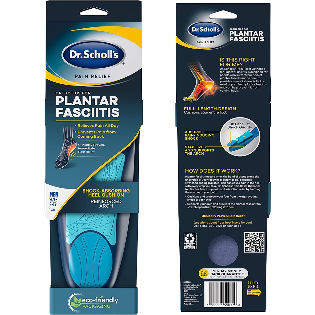 Item received in intact packaging, fast delivery. Hopefully it works in relieving the pain. Fits my safety boots well. Size is adjustable - just need to cut.