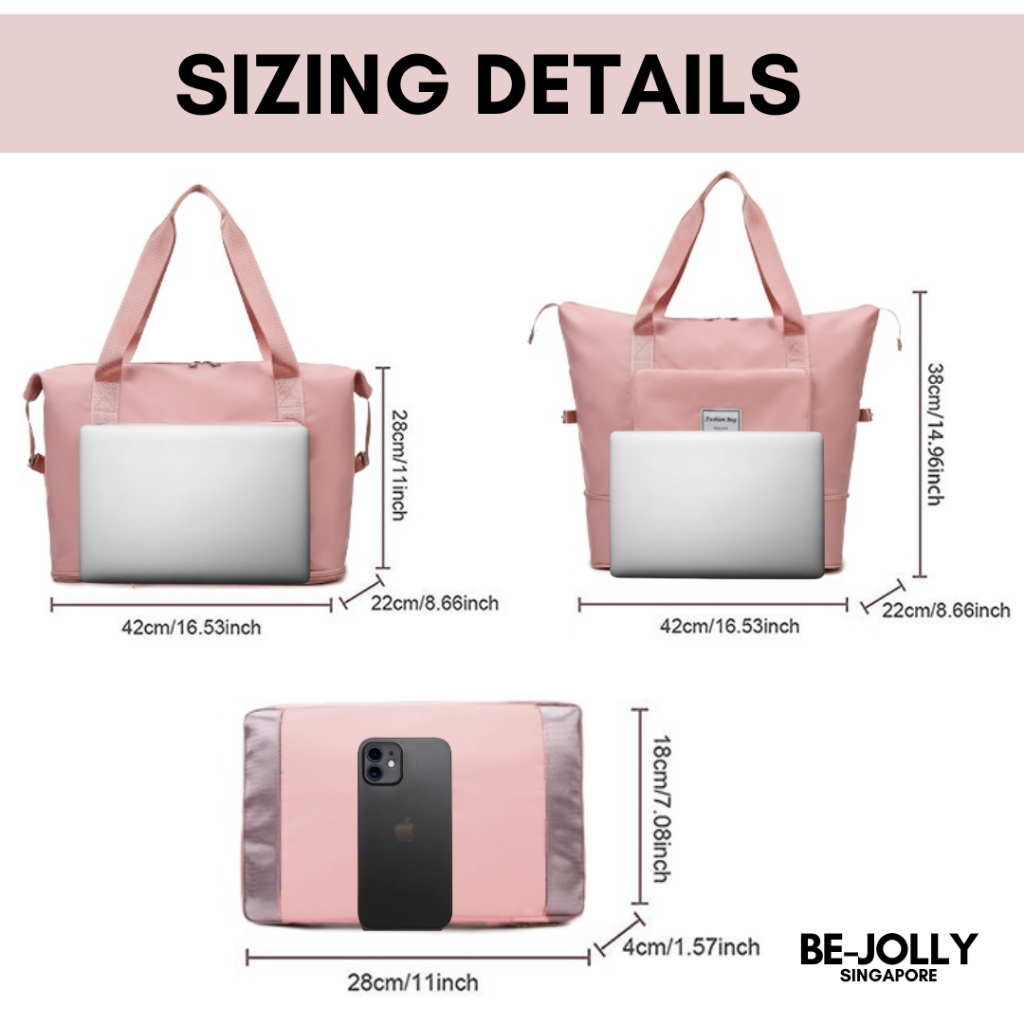 Colour:black and blue Material Quality:look goods Bought 2, black and blue. Although both with same size, black colour seemed to appear bigger in size visually. It can be folded into a compact rectangular size, easy to pack it in the luggage as a spare bag for extra purchase. It provides extendable spaces.