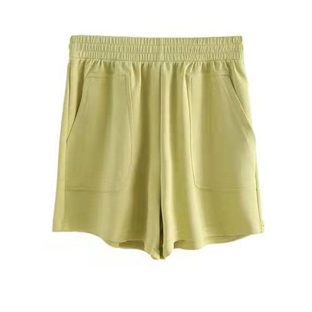 Material Quality:soft Colour:The yellow colour looks like highlighter yellow Soft, have pockets. Comfortable I am wearing large. Usually I am belong to the M/L size. The yellow colour looks like highlighter yellow