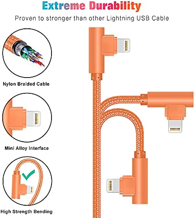 Durable & Strong -- Tangle-free nylon braided fiber material, strong and wear-resistant, make iphone charger cable more durable, more flexible than standard Phone cable. Reinforced stress points designed to withstand 10000+ cycles of flex test without inner failure.