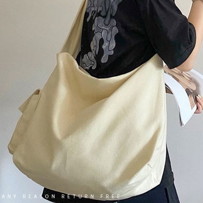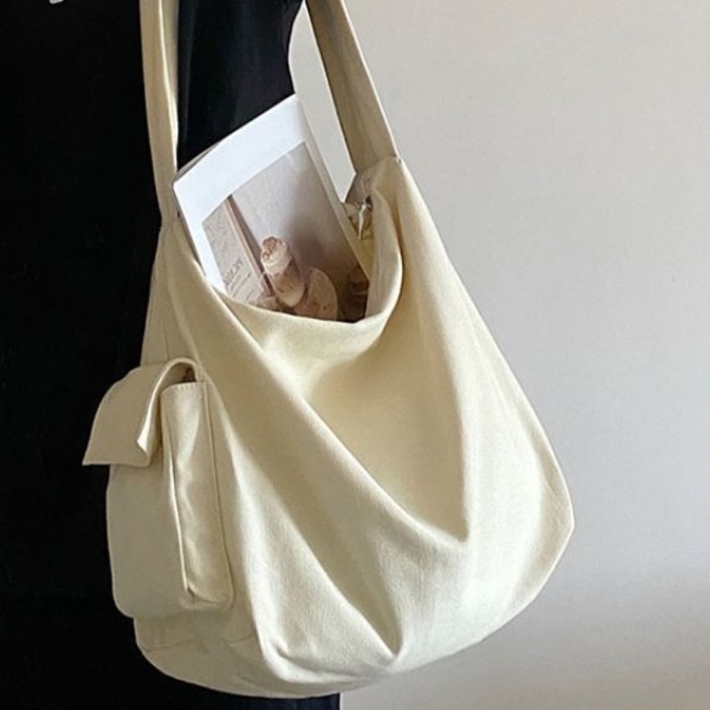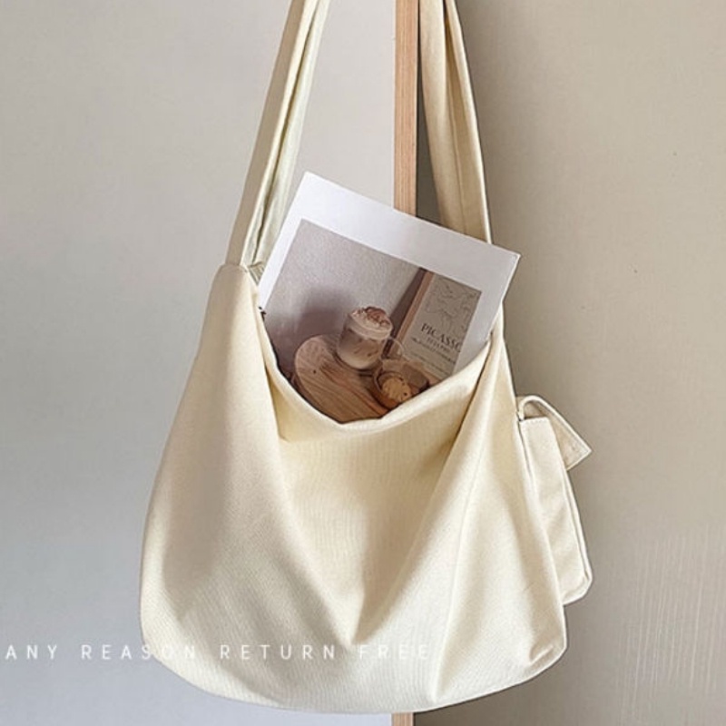 Colour:white Material Quality:canvas Received in good condition.Bag is big and spacious, can put many things. Washable canvas material,so you can always keep it clean although it is a white one.