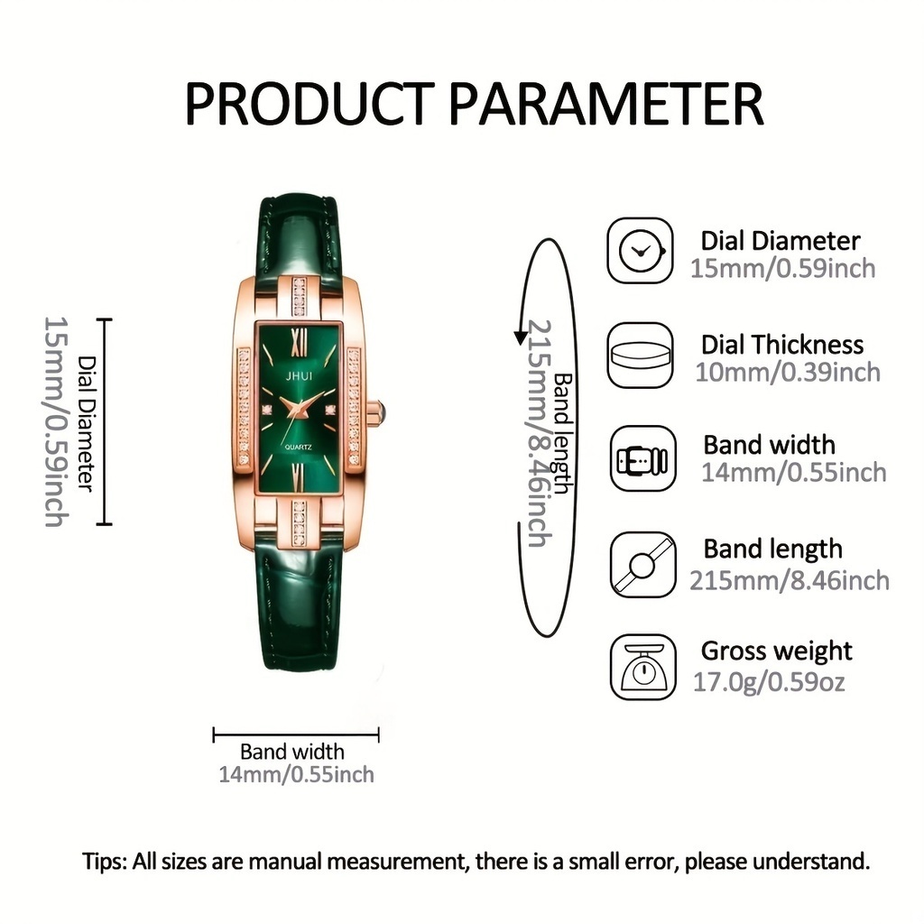 Kegllect Women Watch Set Rhinestone Quartz Watches Ladies Square Dial Jewelry Set Gift for Mom Her