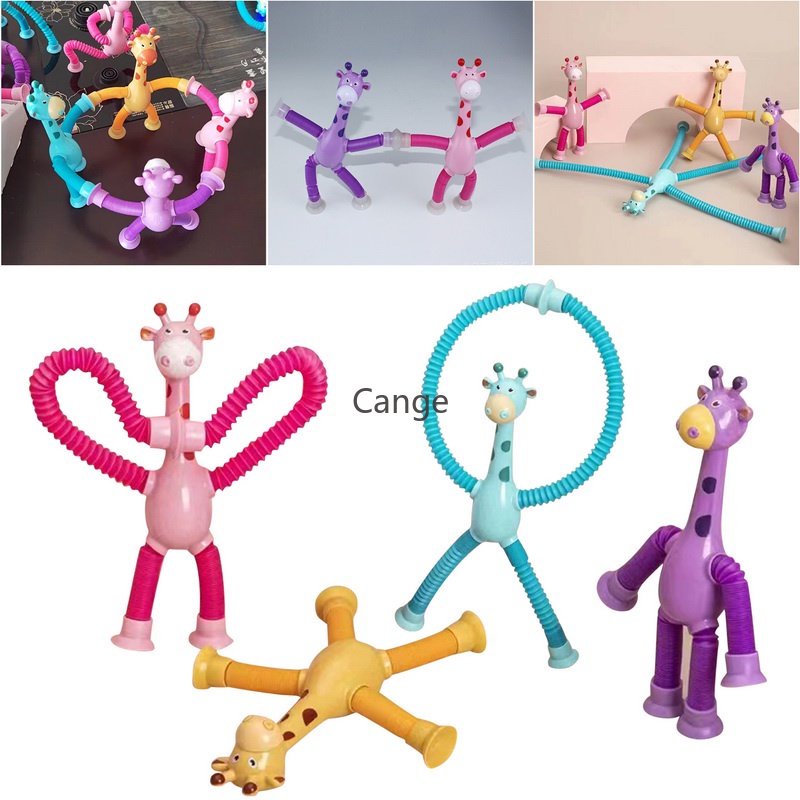 LED Telescopic Suction Cup Giraffe Toy Cartoon Puzzle Suction Cup Parent-Child Interactive Decompression Toy Stress Relief