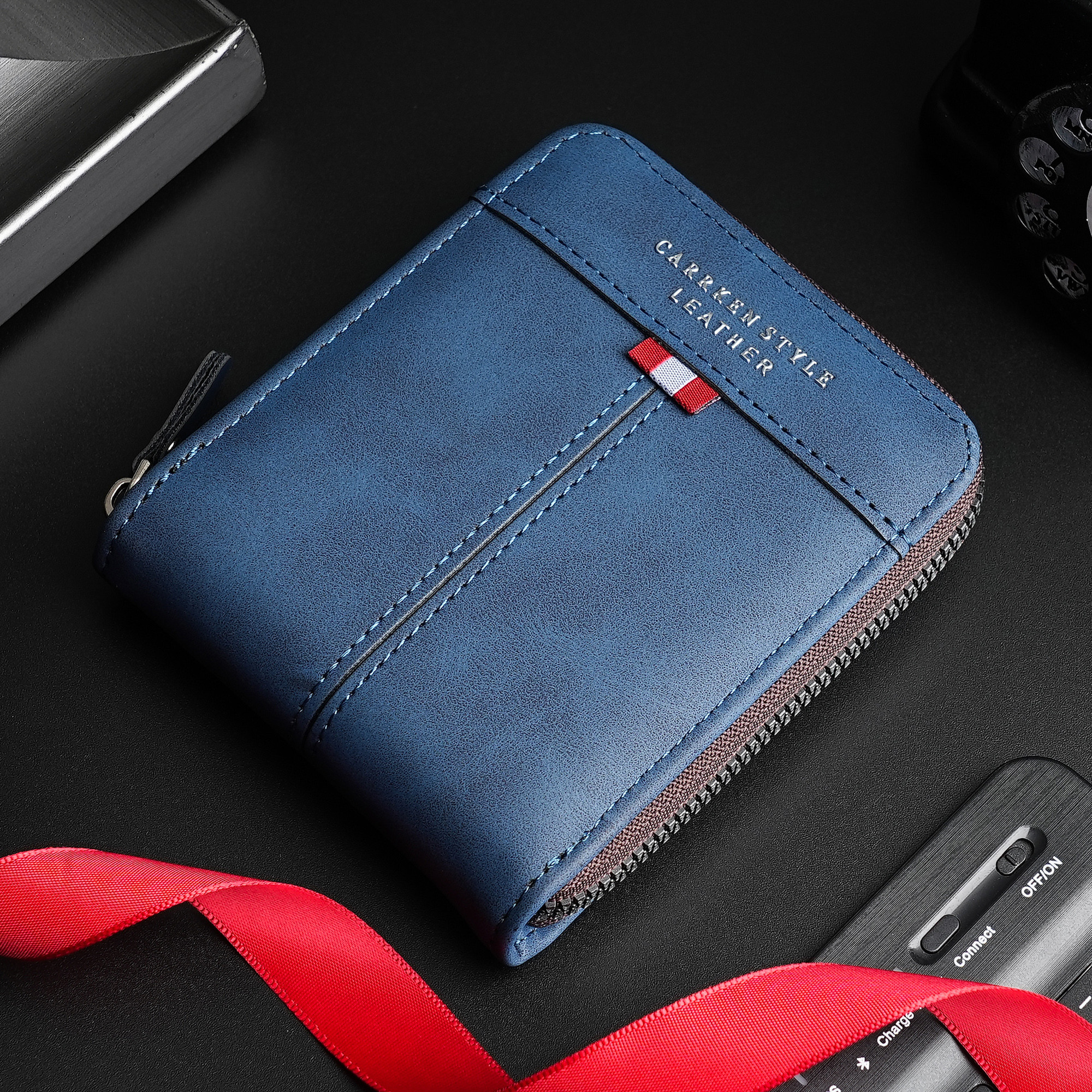 Men New Style Leather Zipper Short Wallet Multifunctional Coin Purse Multi-card ID Bag Card Holder