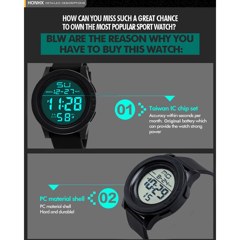 Men Watch Men's Watch Student Large Dial Silicone Sports Multi-Function Cold Light Waterproof Electronic Watch