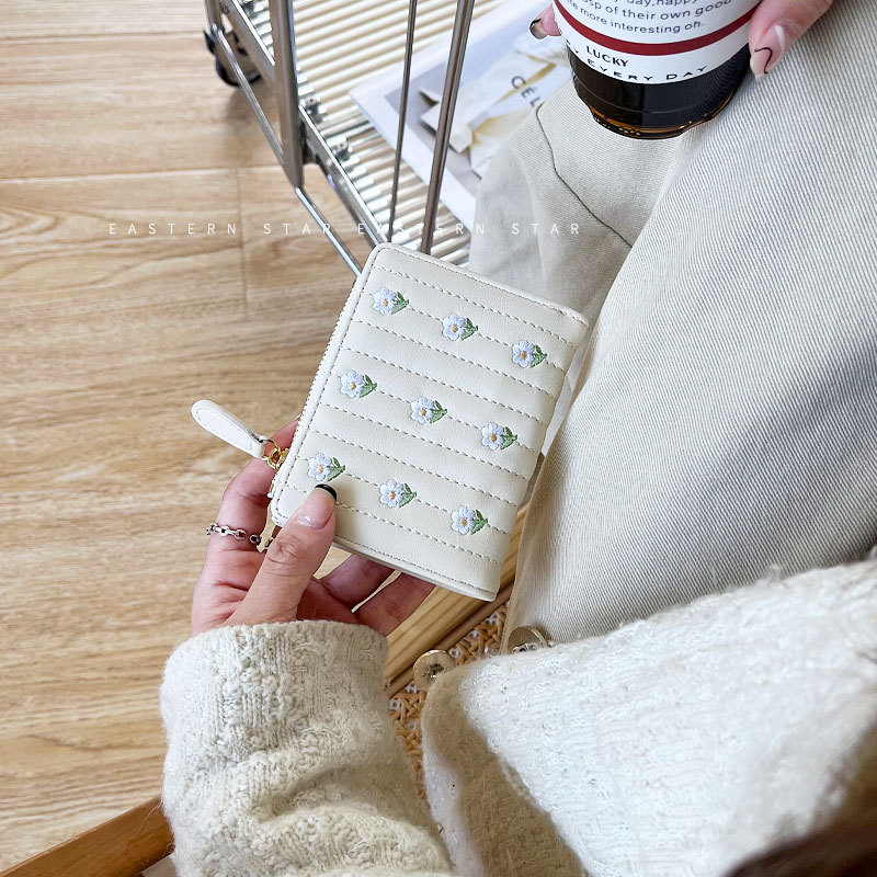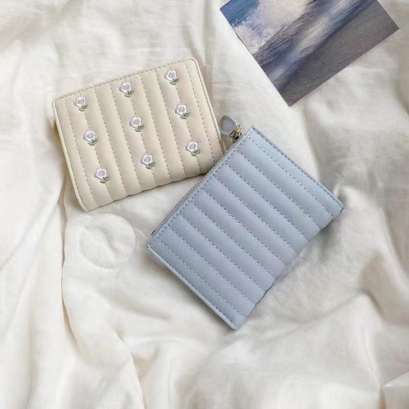 Material: unknown True to description: true Color: beige, beige The wallet has many compartments, holds quite firmly in the hand, the colors and embroidery are simple and cute, the price is reasonable, it is recommended to buy. The video is only for receiving coins.