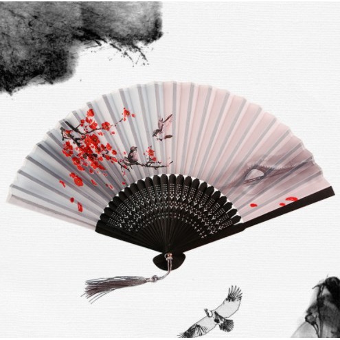 Ready stock Chinese Style Vintage Bamboo Folding Hand Held Flower Fan Chinese Dance Party Pocket