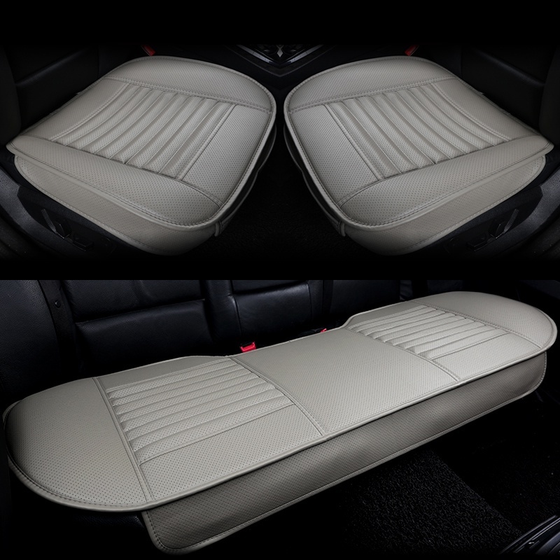 SEAMETAL PU Leather Car Seat Covers Interior Auto Seat Protector Pads Heavy Duty 4 Season Universal Seatcover Mat with Front Storage Pocket Bag