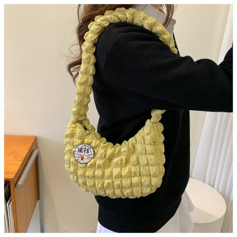 True to the description: dung Material: raw fabric ruffled Color: light green yellow green Fast delivery, comes with a free battery, the bag can hold a lot of things